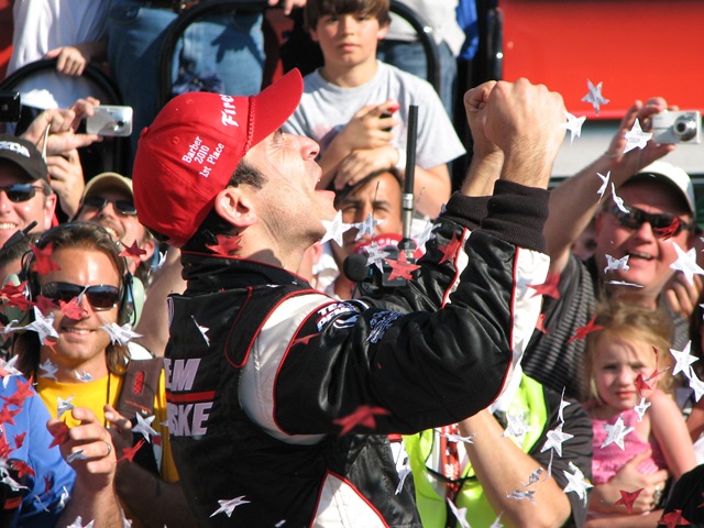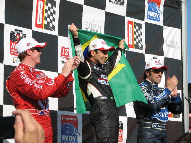 On Sunday, I was in the pits prior to the race and again felt a little out of place as I saw Curt Cavin, Kevin Lee, Robin Miller and the Versus crew all running around doing their duties. This time I stayed though, until the first lap of the race and then migrated to turns two and three. With about fifteen laps to go, I made my way back to the main straight to take in victory lane. My trusted photographer, Susan Scruggs, got some great shots of winner Helio Castroneves and the entire celebration. I’ll post the rest of the weekend camera shots to the flickr account on the home page of this site, later this week.
