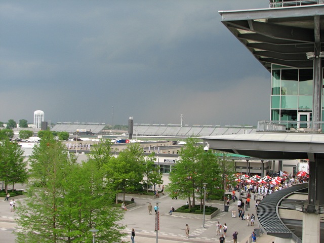 What was shaping up as a very fast Fast Friday, is now threatened by weather. As I type, thunder is rumbling through Indianapolis Motor Speedway. Just as I typed that, the monsoon hit. Fortunately, there was plenty of warning it was coming and everyone had time to run for cover, including the teams. Most, if not all of the cars were towed to the garage area before the rains came.