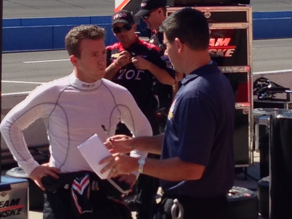Once we got settled, we headed for the pits. There we saw Kevin Lee, who I’ve always called the hardest working person in sports, interviewing AJ Allmendinger.