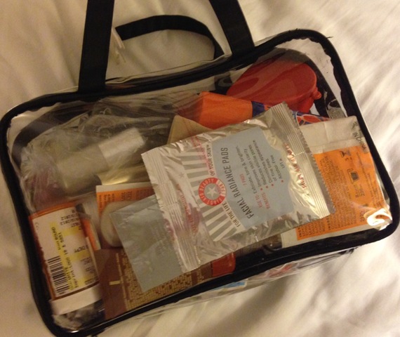 Now it is time to grab my “necessities”–who does not spend about $50 in the travel sample section of Target? I solved the problem somewhat by having a little transparent bag filled with travel size items. Since I am a Sephora addict, I have plenty of little packets from there also. The problem is checking which items are empty from the last trip–I will get organized for that someday.