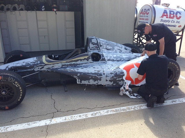I walked through the garage area when I first arrived this morning. I came across one curious finding – the winning car from yesterday, was getting a new look for the 500. Simon Pagenaud’s car will be carrying the livery of Lucas Oil during the 500. So, the Oculus look from yesterday had to go. These days, the cars are covered with vinyl wrap instead of paint. It just seemed a strange way to treat the winning car from yesterday. I guess there is no preserving the look of the winning car for the Grand Prix.
