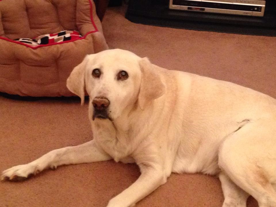 This is a picture of my 13 year-old dog, Luckey, just this past Thursday night, when everything seemed normal.