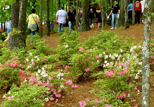 George joined me, and we settled into our seats to watch the second practice of the day. Who knew that they had guys that ran out there before every race and changed the signs in the grass depending on the sponsor. We then hiked our way through the azaleas (ah, springtime I the south) back to the tram for the ride back to where we started.