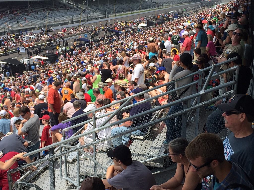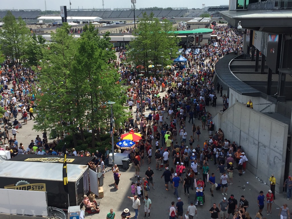 After two weekends of mostly hard-core race fans on the grounds of IMS, it has now become the playground of…um…the more casual fan. On the way up, I received a text from a friend of mine already at the track saying “…this place is PACKED!!! Biggest Carb Day crowd I’ve ever seen”. He did not exaggerate. Unfortunately.