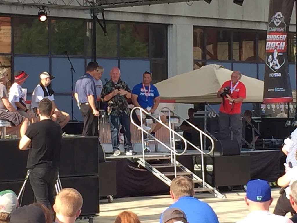 We went to the Burger Bash last night. This is probably not a surprise to people, but I liked the old version better. This did not have the homespun, low-key fthe previous bashes at 96th Street Steakburgers. Instead, it was a more polished production with a stage and lights. The Steak n Shake steakburgers were actually very good and the crowd was huge. But I felt more detached from the proceedings than in year’s past.