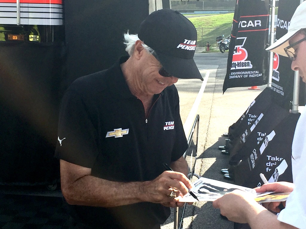 I was able to snap a couple of pics. I got a shot of Helio pitting in the second practice and then just after he got out of his car. Then I got a good shot in the paddock of Rick Mears taking time to chat with fans and signing autographs. He hasn’t driven a car in a quarter-century but he is still one of the best ambassadors for IndyCar. By the way, he is still one of my favorite all-time drivers.