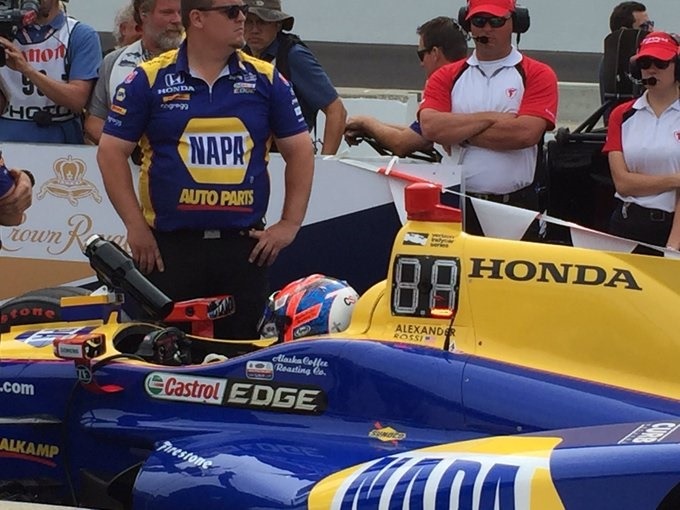 After his crash, this place fell silent. We went for the longest time without seeing a replay. When we did, everyone gasped and feared the worst. Not only did we see it, the drivers in line waiting to go saw it also. I felt for Alexander Rossi, he was positioned next in line waiting to go out when the crash happened. He had to sit there watching the replay and waiting for the SAFER barrier to be repaired. I happened to be standing there and you could sense his uneasiness.