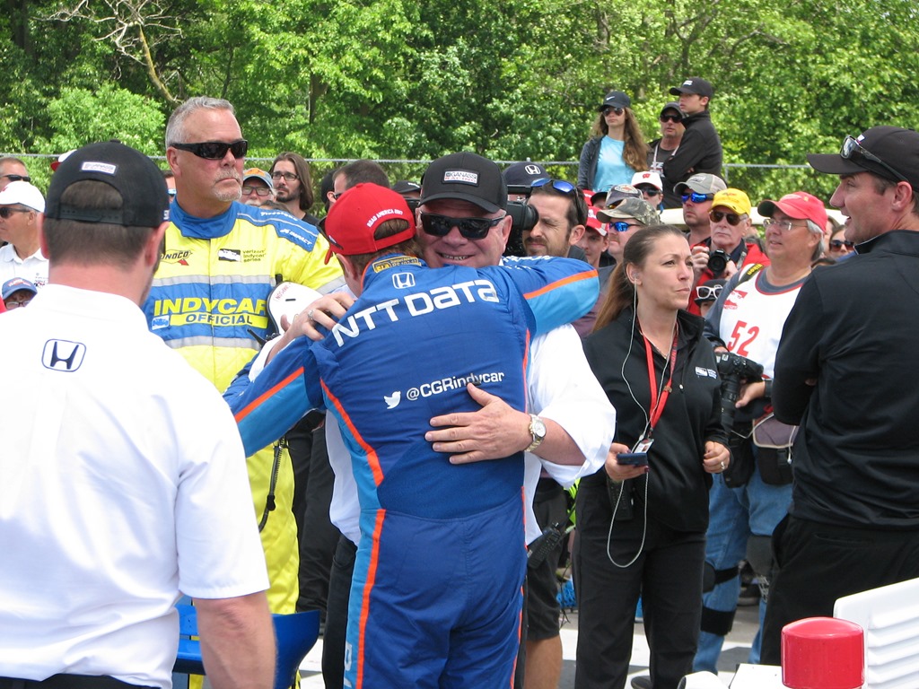 Scott Dixon earned that win by moving up from fifth and holding the lead from a hard-charging Josef Newgarden, who came in second. Helio Castroneves finished a distant third and was suffering from cramps in the Victory Lane celebration.