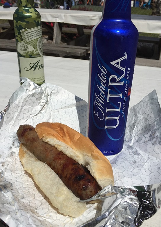 The food at this track is unbelievably good and reasonably-priced. I’m used to paying eight to ten 10 dollars for a beer and another six dollars for a hot dog. At Road America, the beer (TONS of different kinds) is five dollars and you can get a brat for about $4.50. So you could do a meal for about ten bucks. We were told an “Egger” from the Gear Box was a must have for breakfast, and we were not disappointed. They averaged from a plain egg on an artisan bun to more elaborate additions. I went for the ham and George went for the bacon—you could even do a brat egger if you wanted. And it would not be Wisconsin if you didn’t have a brat with German brown mustard on it.