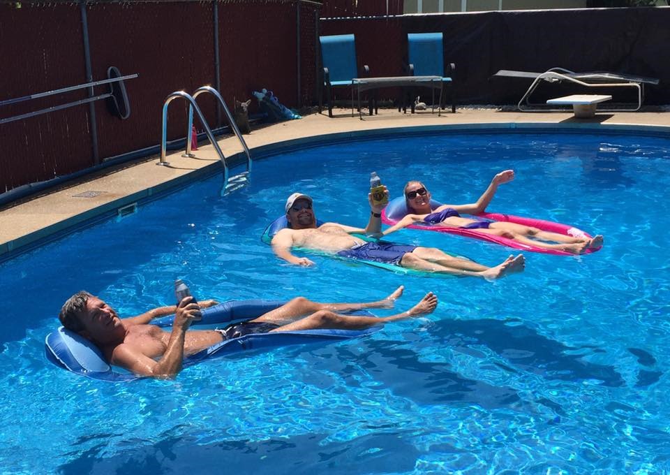 We also have a pool where we like to spend our weekends. Neither of us are big swimmers. We both just like to lounge while floating around in the water, drinking our favorite beverage and listening to tunes blaring out for the neighborhood to hear.