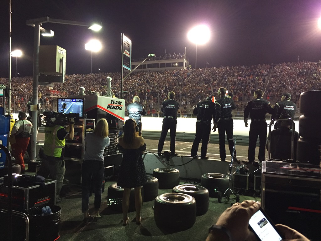 But it’s after 1:00 am Saturday night (Sunday morning) as I type and I’m tired. Once thing is certain; I’ll have plenty to write about for Monday. For now, I’ll close with a video from where I was standing most of the night at pit-in. I took a representative view of what I saw as the cars dove into Turn Three and came out of Turn Four and onto the front straightaway.