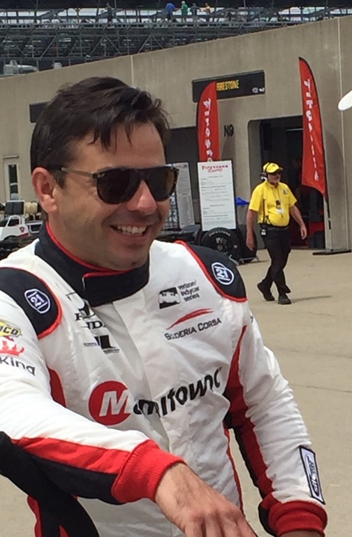 Afterwards, we went wandering through the garage area. We came across Oriol Serva, who was curiously in a driving suit even though he is not driving in today’s race. Maybe he’s just trying to get a jump n Tuesday’s opening practice for the “500”