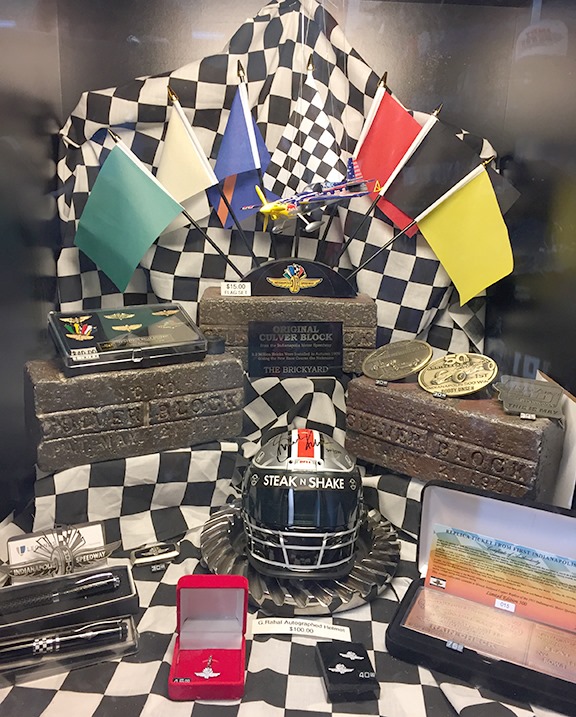 Right beside the IMS Museum Gift Shop is the sale (clearance) store. In this store, you can pick up some of the older merchandise that hadn’t sold in previous years. They have the old driver’s shirts from a few years back. If you liked Graham Rahal’s Steak’n’Shake apron t-shirt, now is your chance to buy it. I also found some top-quality (as in 100% cotton) Red Bull Air Race merchandise that I admired last year in the full-price gift shop. Some of the 100th Running logo merchandise is still available in the sale shop. My favorite thing I found was a nice sweatshirt with hidden pockets—I love pockets. I never saw it last year in the full-price store, so I don’t know where it was hiding. They have some great posters and wall hangings. I got George a nice picture of the 100 winners of the Indianapolis 500 to add to his wall collection. If I don’t watch out, we will be heading into man cave territory.