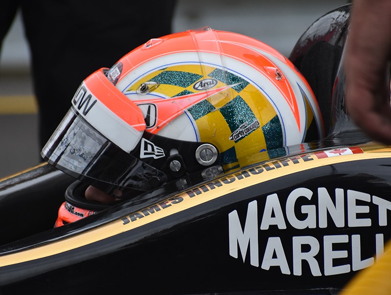 Susan was able to get some good photos of a few drivers sitting in their cars during the prolonged track inspection; Simon Pagenaud, James Hinchcliffe and Alexander Rossi. This was the view of the cars that most of us had in this afternoon’s shortened practice.