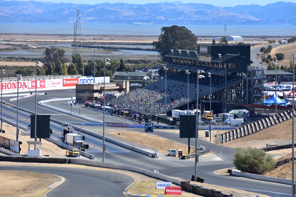 Since it took so long to get our rental car in San Francisco, we ended driving straight to the track. After the Friday practice, we drove to Petaluma, which is about fifteen miles northwest of the track. We stayed at Hotel Petaluma, which was a quaint old hotel. It is almost one-hundred years old, but has been recently refurbished and is a good combination of traditional and modern. It still has traditional wooden window panes. This was the view as we we woke up at dawn on Saturday morning.