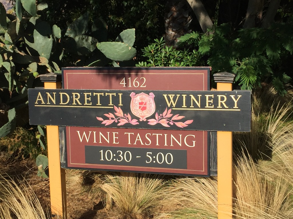 From the redwoods, we headed southeast to Napa Valley, where the Andretti Winery is located. What a relaxing way to end our day of driving. It is set off the road and in the middle of their own vineyards. There were still plenty of grapes that had not been harvested. It’s not the biggest or the most commercial winery out there, but it is very nice, low-key and peaceful. The staff there was very friendly. Even though we stayed past 5:00, they didn’t seem to mind. If you are ever in the area, I recommend stopping in.
