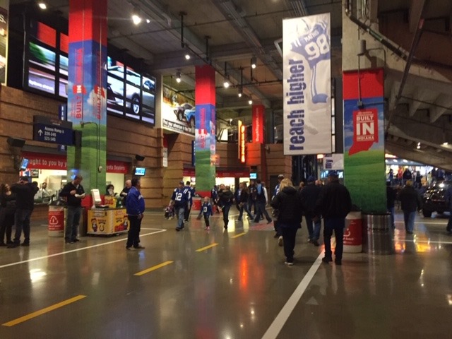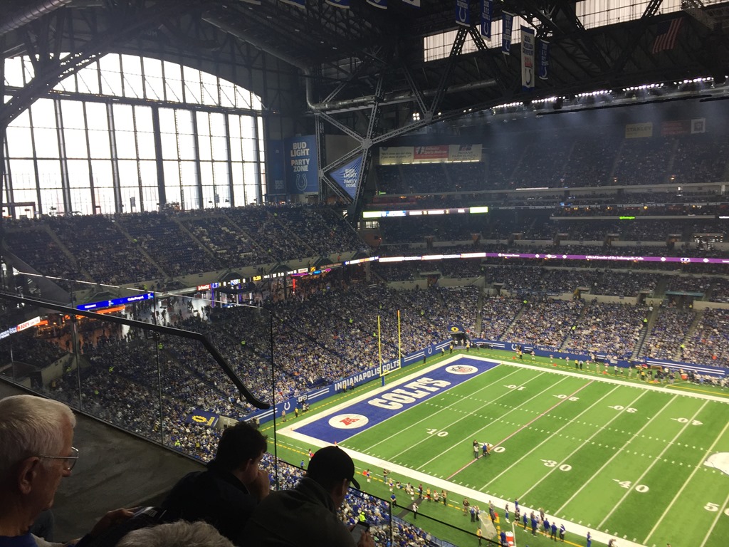We got to sleep in and checked out around 11:30. We walked over to the stadium at a very leisurely pace and had time to look around and explore the facility. I was very impressed with Lucas Oil Stadium. They have concessions at every turn (including a Bud Light Pit of Misery – Dilly Dilly) and the food selection was a lot better than the Titan’s Nissan Stadium in Nashville. Plus on a cold day, you cannot over-emphasize the importance of an enclosed stadium. My only complaint is that with a closed roof and polished concrete in all of the concourses – the place is an echo chamber. It’s really hard to hear, but I suppose that’s the idea.