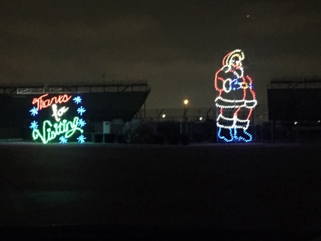 But of course the biggest thrill was coming onto the main straightaway just past Turn Four. Even though it’s at night and there are lighted Christmas displays in the stands, there is something surreal about being in your own car and looking ahead and realizing that you are on the main straightaway of the Indianapolis Motor Speedway.