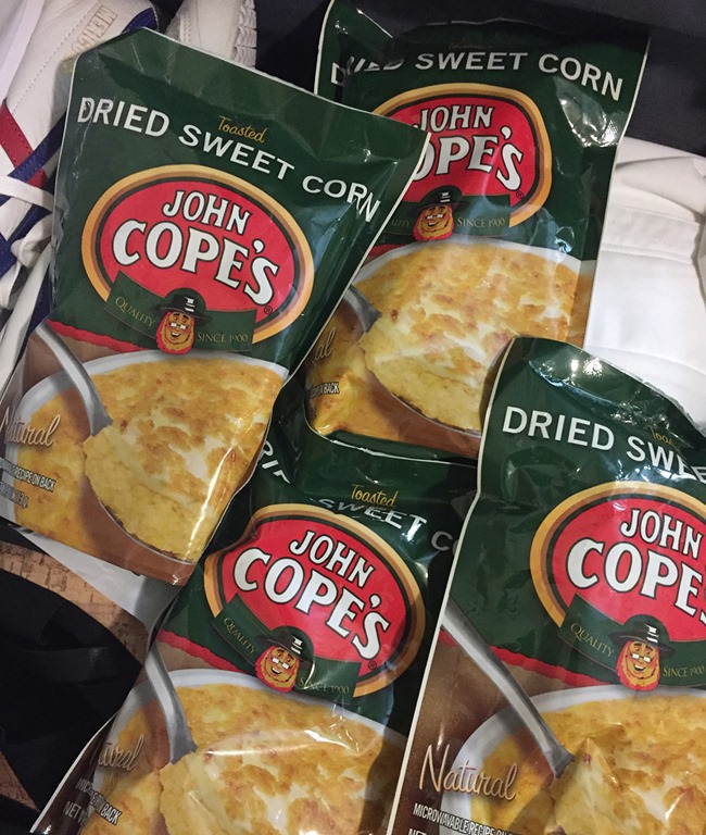 My family is from the Lebanon, Pennsylvania area and I was thrilled to find John Cope’s Dried Corn in the grocery store. I managed to get a few bags in my suitcase. It’s a family tradition at our dinner table at the holidays—my kids grew up on it. It is kind of a pain to prepare, since you basically have to reconstitute the corn, but it is worth the wait. It just has a really good sweet corn flavor. It reminds me of my grandparents and the summers we spent with them in Pennsylvania.