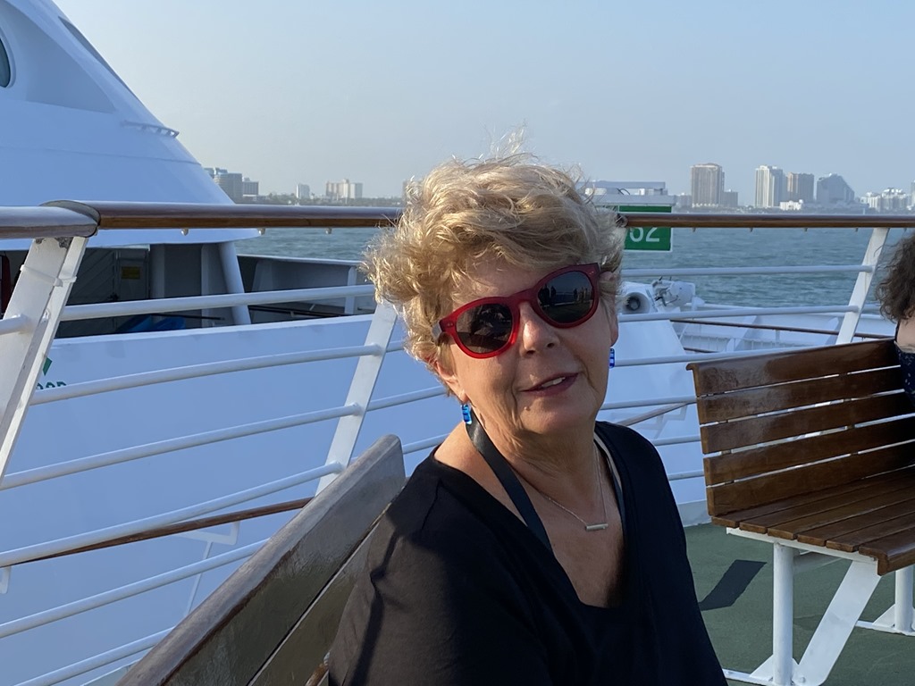 I have been on two cruises now, and the excitement you feel at the initial sail-away, leaving port, is palpable. I dragged Susan up to the front of the ship so we could be on the bow as we entered the Atlantic. It was a bit windy, but we didn’t care. It was 82° and sunny. It also helped that we knew it was supposed to get down to 17° back home in Nashville that night.
