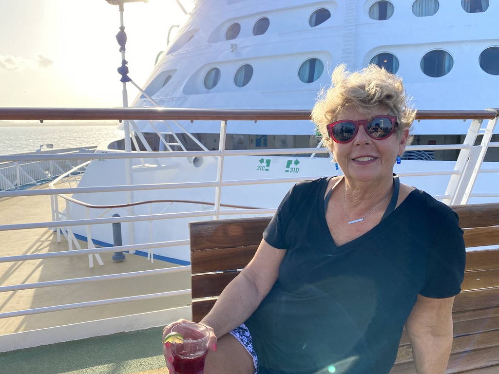 I chose a four-night cruise because she had never been on a cruise and she is prone to motion-sickness. She got her doctor to write her a prescription for the patch behind her ear before we left. To some extent, it worked. She never got queasy or nauseous on the trip. However, there was one problem neither of us anticipated. She got vertigo.