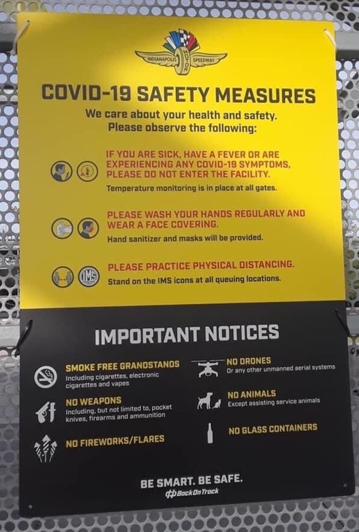 Roger Penske knows how to work with state and local politicians. He is also a very intelligent and responsible individual. He will ultimately make the correct call, but I’m convinced that he will decide to run the race with fans, albeit wearing masks and checking fan’s temperatures at the gate. I posted this same photo just a couple of days ago, but seeing that signs like this have recently popped up at IMS gives me another reason to think that they fully intend to run this race with fans in August.