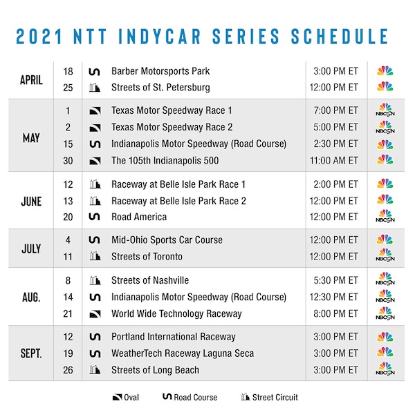 NBC released the 2021 TV schedule for the NTT IndyCar Series this past week. There were a few surprises, most of them positive. There was one that prompted questions from a few fans and a glaring omission.