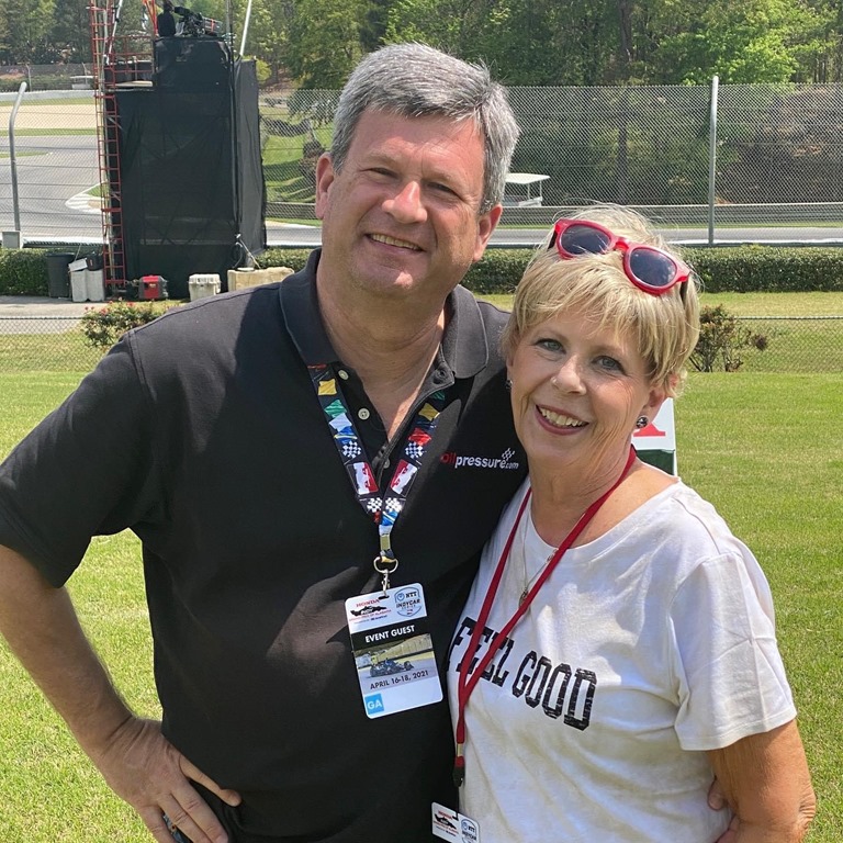 With no access to the Media Center which kept me from posting at the track the whole weekend, our time at the track was very relaxing. Since we did not have access to the pits or paddock we did not take near as many photos as we normally do. Susan especially missed our normal trip to victory lane. I have included a few random photos below, including an elephant head in the Men’s restroom and a well-placed umbrella right in front of us. One, with Susan’s permission from Friday at the new Buc-ee’s that just opened up near the track, which shows how much of her hair has come back. The last photo was a picture made of the two of us, just before the race, while she was wearing her fake hair. It was a very good weekend for the both of us.
