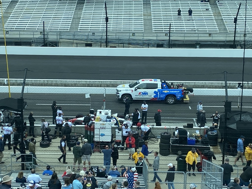 Welcome to a damp, but drying Indianapolis Motor Speedway. We awoke to rainy skies and warm temperatures (74-degrees). We lounged around and went to check into our regular hotel for the weekend, knowing that there was no way they could start practice on time at 11:00 am.