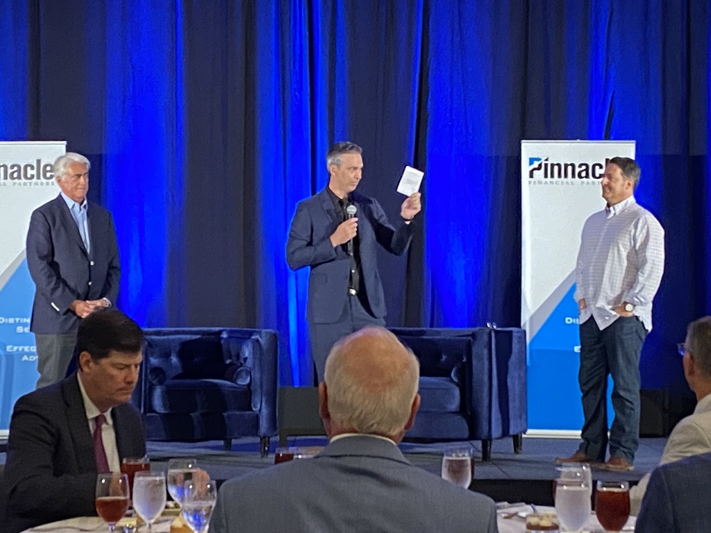 Susan and I went to a luncheon event in downtown Nashville on Wednesday. Mark Miles was the guest speaker, but event organizers were also present. It was sponsored by Pinnacle Bank, one of the partners for the Grand Prix. It’s not our bank; but a friend of ours that works there, knew we would be interested, so he invited us as his guests. It was a conversation with Miles, moderated by veteran racing broadcaster Ralph Sheheen – who will also serve as the PA announcer this weekend.