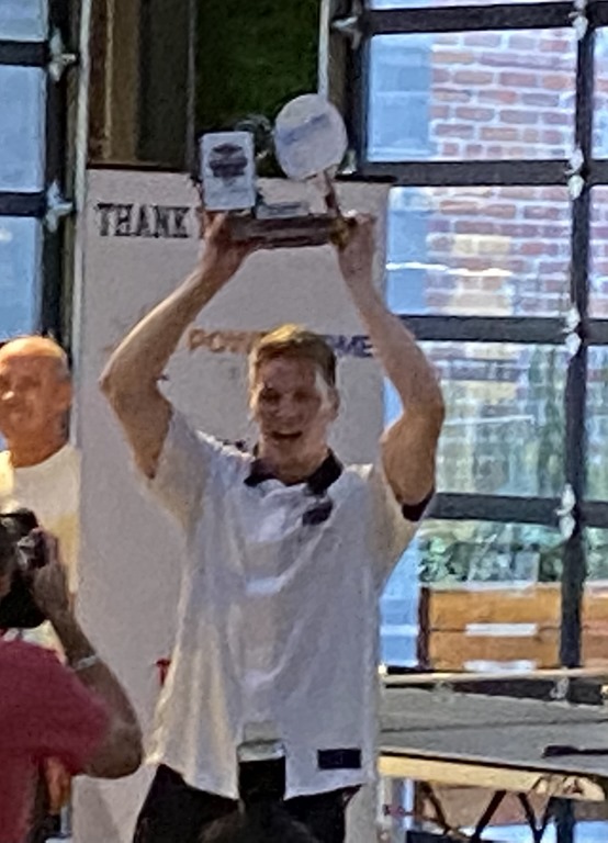 Ping-Pong isn’t really my thing, but it was interesting to see who was good and not-so-good. I caught a shot of the not-so-good Colton Herta teaming up with the equally bad Romain Grosjean.