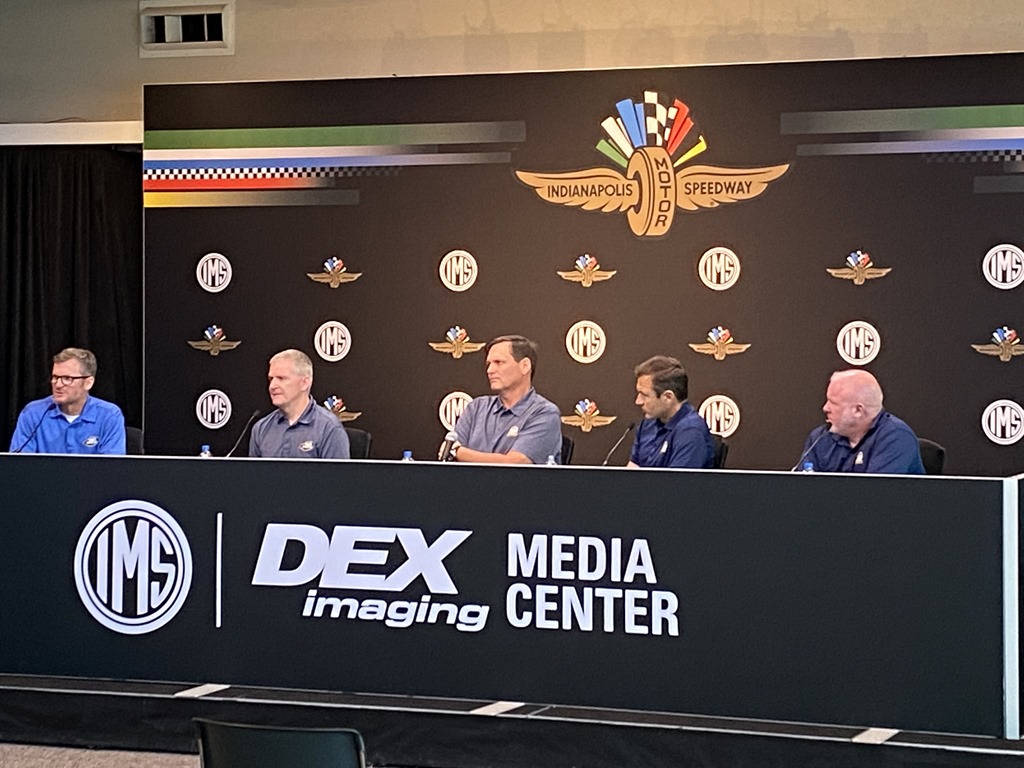There is currently a press conference going on in here, between the two NBC crews that are here. Dale Earnhardt, Jr, Dale Jarrett, Steve Letarte, Townsend Bell and Paul Tracy. Both crews acknowledge that their respective fan bases are a little protective of their turf this weekend, so I’m not the only one.