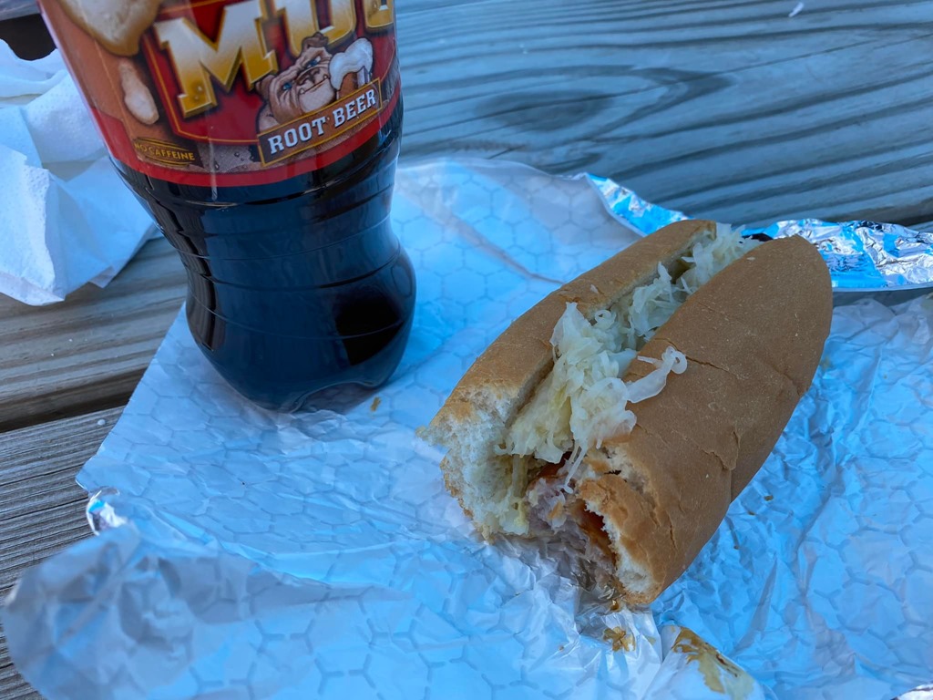 After my last post, we went over to the main concession stand in the heart of everything (the one that was one run by St. John the Baptist). Susan got a loaded baked potato and a fresh food tray. I got the far less healthy, but more satisfying brat with German mustard and sauerkraut.
