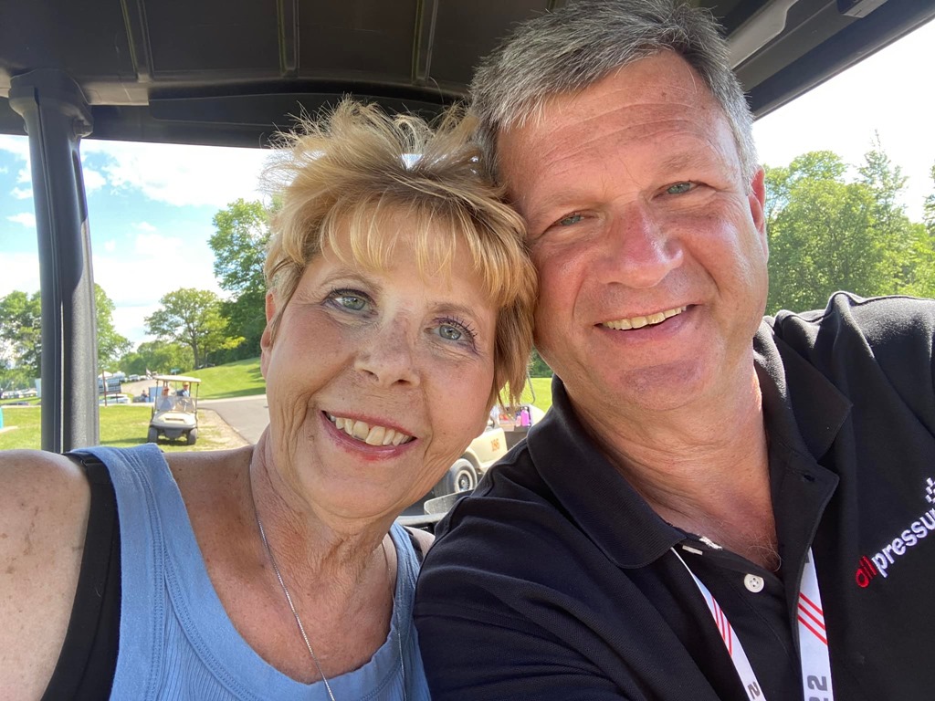 After practice, I went to go get Susan and we just rode around taking in all of the ambiance that Road America has to offer. She wanted to take a selfie of us celebrating her good news from the doctor.