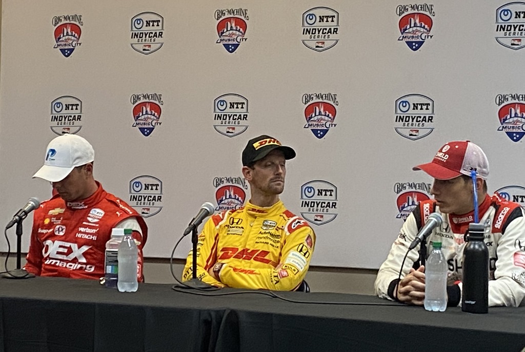 During the post-qualifying press-conference, the question was thrown out to the young drivers in attendance, if the Nashville vibe made them want to get out and take advantage of the Nashville nightlife. Lundgaard said he didn’t like going out. McLaughlin said his wife would be having a better time than anyone in the room. Pato O’Ward (not pictured) said that Nashville is “just plain dope”. Grosjean took offense at not being included as a young guy.