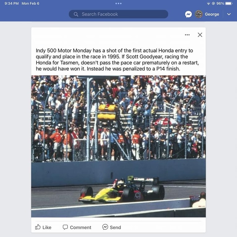 1. Starting and maintaining a dedicated website for blogging takes time and effort. When I was active with my music blogsite, I reviewed, revised, and edited every post before I put it out there for the world. My feeling was, if I’m going to take the time to create a blog, I want to make sure my info is right. Facebook sites on the other hand are more or less effortless to launch and maintain. I thnk there’s much more half-assery on the part of those who run them. I know there are far fewer IndyCar blogs out there these days, so I get the temptation to join IndyCar Facebook sites. That said, your example is “Exhibit A” for why I just stick to blogs.