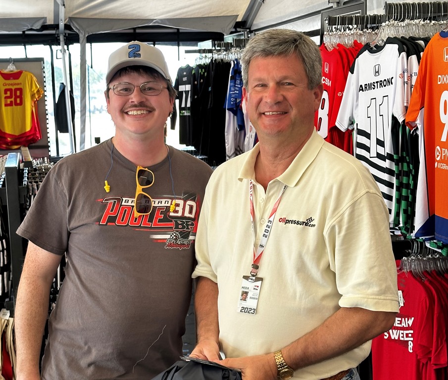Yesterday during the NASCAR Truck race, Paul and I went to the IndyCar Merchandise tent outside of Turn Four to get a few things. We had arranged to meet long-time reader and commenter “Billy the Skink”. He showed up just as we were browsing the merchandise. I haven’s seen him since the race at NOLA in 2015, so I had Paul take a photo.