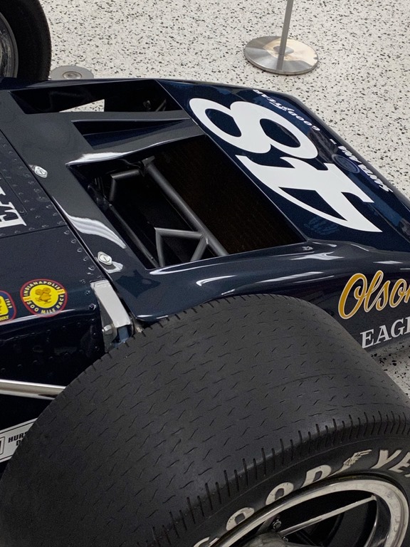 I was sort of surprised by some of the second-place cars that weren’t in this exhibit. For instance, what about the car that Marco Andretti drove to get passed by Sam Hornish in the last two-hundred yards of the 2006 race? Although the car was actually classified in fourteenth-place, I’d like to see Scott Goodyear’s car from 1995 – the car that passed the pace car. Jerry Grant’s Mystery Eagle in 1972 finished second, but was penalized to twelfth. Where is it now? What about Roberto Guerrero’s 1987 car that he stalled on his last pit stop – allowing Al Unser to come around and pass him, or the car that Rick Mears came so close to winning over Gordon Johncock? All of these were cars with major stories behind them, yet they were not included. I guess you can’t have all of them made available to you.