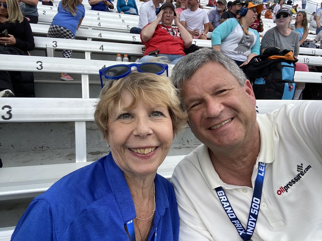 It was a good crowd for a Friday afternoon. The weather was cool all day, which made thins very pleasant. When the sun tucked behind the clouds, it was down-right chilly. I’m not complaining. because next week will probably be twenty-degrees warmer. We were in the pits for both groups of Round One, but we moved into the Tower Terrace stands for Rounds Two and Three. The view was much better and it was nice to sit in the sun and take it all in. We took the obligatory selfie, while in the stands.