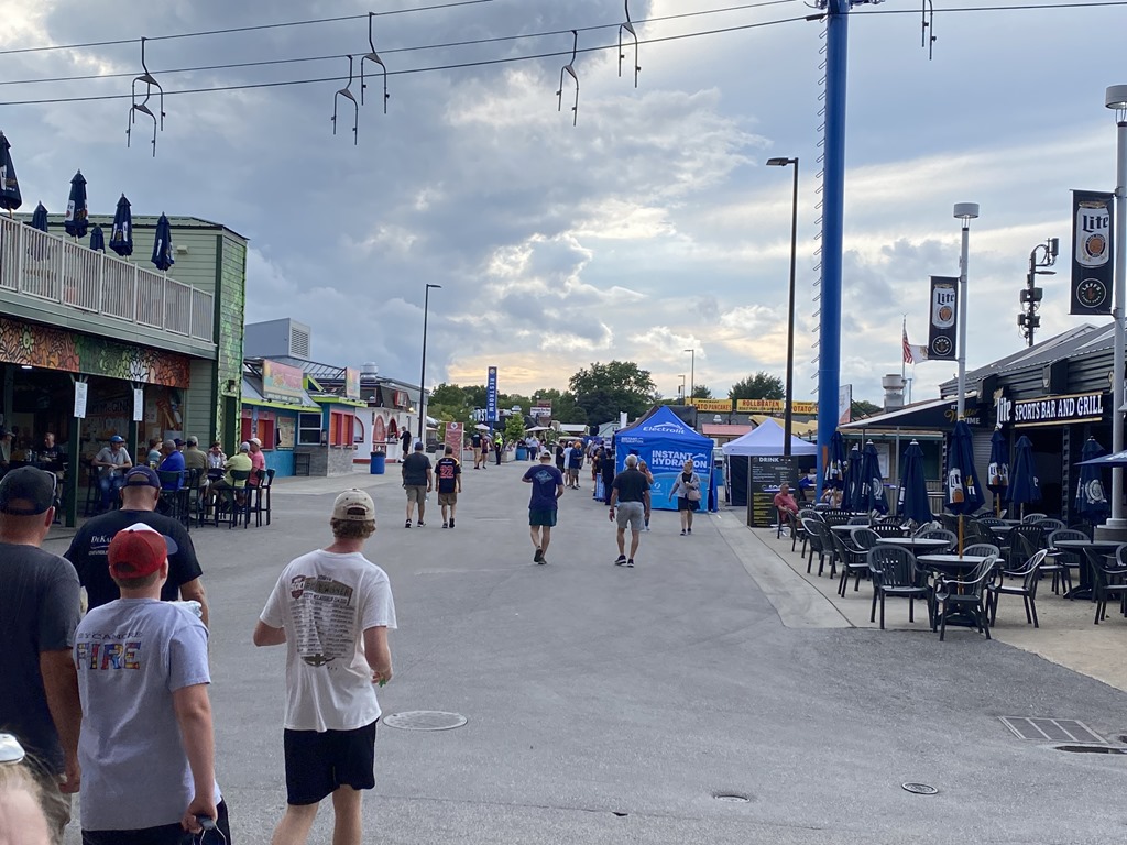 Just as we came out of the tunnel connecting the infield to the stands, we saw all of the independent food vendors nestled just behind the grandstand. I had heard how this was almost like a food court at a mall. This certainly beats some of the standard institutional fare we’ve seen at some tracks. We didn’t sample anything yet, but it all looked good and unique. We will dig in there at some point this weekend.