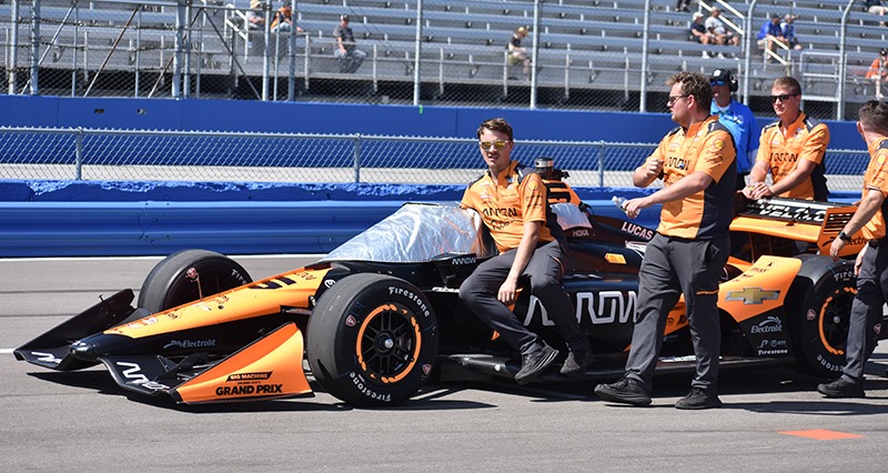 Although this is his first year to drive on the ovals, Chip Ganassi Racing’s Marcus Armstrong had a strong qualifying effort. He will start seventh in this afternoon’s Race One , and third on Sunday. Not too shabby for an oval rookie.