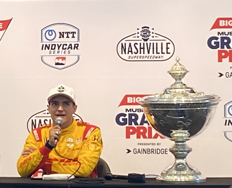 This is the third time I have been in attendance to cover an IndyCar season-finale; Fontana in 2013, Sonoma in 2018 and today at Nashville. Not one of those times did the driver that won the championship, win the season finale. I’ve always felt sorry for the race winner of the season finale, because the race winner is always overshadowed by the championship winner. Colton Herta won today’s race in exciting fashion. He passed Pato O’ ward for the lead with four laps to go, using Sting Ray Robb as a pick in traffic.