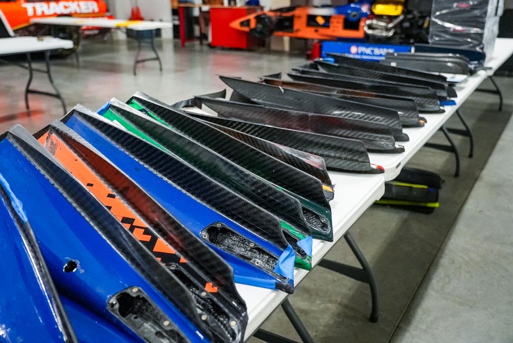 Who wouldn’t want a full front-wing complete with nose-cone (notice I didn’t use the dreaded term front nose) from a 2005-era Panoz, complete with Toyota markings? If that’s too pricy, how about front-wing pieces from the current car. From what I understand front wings were going from $300 to $500 dollars. (All photos below from CGR Facebook page)