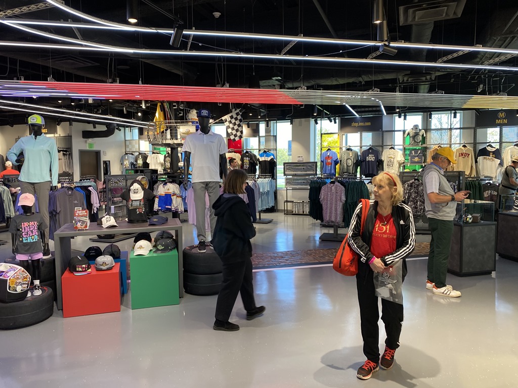 After the museum, we went through the garage area and then back to the pits as the all-skate session was about to start. After the cars got going, we went up into the Tower Terrace stands in front of the media center and engaged in one of my favorite activities – watching race cars go around the historic oval. I’m not sure Susan was as enthralled as I was, but she enjoyed sitting out in the warm sunshine.