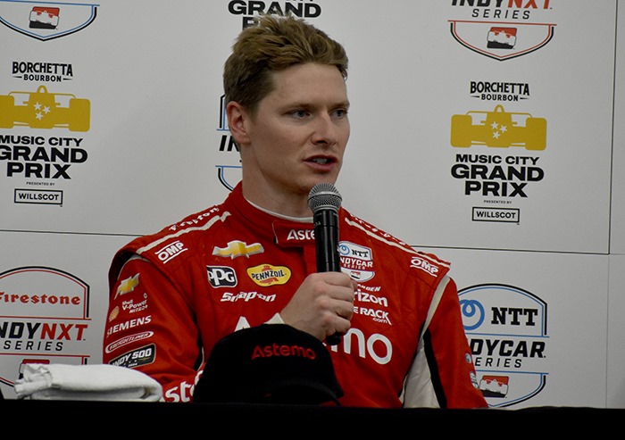 Considering he had just won his first race of the season, as well as on his home track – it was a rather subdued Newgarden who addressed the media after the race. The vibe I got was he was more relieved to finally get a win, but was just as happy to put this season in his rear-view mirror. (Photo: Susan Phillips)